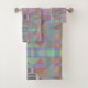 Formes géométriques colorées motif, oeuvre d'art sur mesure dans des tons proéminents de vert, violet, rose, bleu et avec des nuances supplémentaires de marron, gris, jaune, rouge, orange, or. Elégant design art numérique tendance.