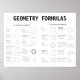 Poster size list of Geometric formulas including circles, squares, triangles, ellipse, sectors of circles, parallelogram, annulus, trapezoid, polygon, cubes, cones, pyramids, sphere, torus, tetrahedron.