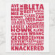 A typography design that has a collection of northern English, Geordie slang. There are words such as BELTA, LASSIE, LADDIE, DEED, CLASS AND PROPA. Geordie colloquialisms can be heard mainly around Newcastle on Tyne.