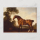 This Romanticism animal masterpiece titled, A Saddled Bay Hunter is made by the famous painter, George Stubbs using oil on panel in 1786. His most famous work is probably Whistlejacket, a painting of a prancing horse commissioned by the 2nd Marquess of Rockingham, which is now in the National Gallery in London. This and two other paintings carried out for Rockingham break with convention in having plain backgrounds.