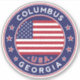 Columbus sticker with American flag colours rounded shape.