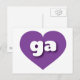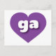 This postcard features a shapely and vibrant purple heart containing the bold, white, rounded lower case letters ga, a playful abbreviation for Georgia, the peach state. The reverse side of the postcard is blank, awaiting your personalized text or handwritten sentiments.