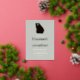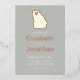 State map silhouette with heart and script design. Simple destination wedding design. Personalize by adding personal details.