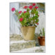 Aquarelle rouge géranium en fleurs devant le mur de pierre de Chypre