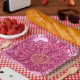 Gerbera Daisy Block Print, Maroon & Pastel Pink Paper Plate