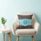 Gerbera Daisy Scroll Burlap 1 teal bandeau Throw Pillow