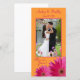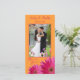 Bright orange and fuchsia pink gerbera daisy flower wedding photo thank you card. This wedding thank you photocard is bright, cheerful, and fun. This pink and orange daisy wedding photo thank you card is perfect for a spring wedding, a summer wedding or a wedding with a fuchsia or hot pink and bright orange themed wedding. Gerber daisy flowers are great favourites of everyone. In this case, the daisy flower is a magenta pink colour and is covered in water droplets as though it has just rained. It's paired with pumpkin orange for a bright and bold look. You can personalize all the wording and the wedding photo on this orange and pink gerber daisy wedding thank you card. In addition to a wedding, this photo thank you card would also work well for a variety of other special occasions. All you need to do is change the text.