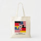 Stylish patriotic GERMAN AMERICAN flag tote bag design, showing the flag of GERMANY and the Stars and Stripes flag of the UNITED STATES OF AMERICA, connected in the shapes of jigsaw pieces. The text reads CELEBRATING GERMAN-AMERICAN HERITAGE on the front, and at the centre there is a MONOGRAM. All text is CUSTOMIZABLE, so you can create your own, and add your name and initial. Specially designed to celebrate German-American Day and German-American Heritage Month in October or as a gift for your favourite Deutschamerikaner throughout the year. Matching party supplies, clothing and gifts are available, so you can celebrate your heritage in style.