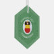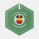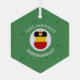 Hexagon shaped glass ornament for Christmas decor featuring an angel dressed in the flag of Germany. The German Christmas angel is found inside a white circle of squiggly squares with a background of green squiggly squares. Add your own text, if you wish. Personalize with a name and customize with the year.