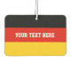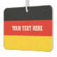 German flag car air freshener | Germany pride. Flag of Germany with custom text for name, funny quote or monogram. Patriotic country symbol design to refresh your auto with different cool scents to mask dog / pet smell and other dirty stinky odours. Unique gift idea for men and women. Create your own for dad, mom, mother, father, uncle, grandpa, brother, son, sister, wife etc. Custom air refreshener with customizable template. Make it smell like a fresh new car or the sea. Double sided design. Make your own slogan or saying.