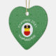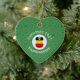 Heart shaped ceramic ornament for Christmas decor featuring an angel dressed in the flag of Germany. The German Christmas angel is found inside a white circle of squiggly squares with a background of green squiggly squares. Add your own text, if you wish. Personalize with a name and year. Fun stocking stuffer or gift.