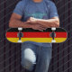 This design features the national flag of Germany (officially known as the Federal Republic of Germany). The German name for the country is Deutschland. Germany is located where the regions of Central and Western Europe meet, between the Baltic and North seas to the north and the Alps to the south. The country has 16 constituent states, known as Länder. Germany borders Denmark to the north; Poland and the Czech Republic to the east; Austria and Switzerland to the south; and France, Luxembourg, Belgium and the Netherlands to the west. The capital and largest city of Germany is Berlin, while its financial centre is Frankfurt (officially Frankfurt am Main). The largest urban area in Germany is the Ruhr valley. Other major cities and towns in Germany include Hamburg, Munich (München), Cologne (Köln), Stuttgart, Düsseldorf, Leipzig, Dortmund, Essen, Bremen, Dresden, Hannover, Nuremberg (Nürnberg), Duisburg, Bochum (Baukem), Wuppertal, Bielefeld, Bonn and Münster.