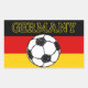 The flag of Germany, tricolour, displaying the national colours of Germany: black, red, and gold. In the middle there is a sketch / scribble style picture of a black and white, soccer ball / football.