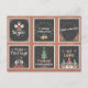 Set of hand-drawn Christmas greeting card designs featuring cute illustrations and sayings in German. Each card says something different like Fröhliche Weihnachten, and others. This set includes six cards with angels, bells and more!