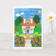 A 'Good Luck with Your Move' card with a German greeting and a pretty cottage from a handpainted paper collage by Judy Adamson. The inside is left blank for your own message and the front greeting can be changed by contacting me through my store.