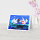 A Birthday Card with 'Happy Birthday' in German, with a seascape with yachts, from a handpainted paper collage by Judy Adamson. The inside is left blank for your own message and if you would like the front cover text changed, please contact me through my store.