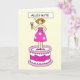 A cartoon lady in pink, holding a cocktail and standing on a large cake saying 'Alles Gute' which is 'Happy Birthday ' in German.