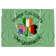 Personalized large gift bag with the flags of Germany, Ireland, and United States of America (USA) in the leaves of the shamrock, designed to celebrate St. Patrick's Day, 4th of July, and Italian holidays. It sits on a background fractal of light green squiggly squares. Above are the words THREE CULTURES. Below, ONE YOURNAME. Words are in dark green, Celtic style, circular letters. Add a name in the appropriate place for a personalized look to your gift. Fun for St. Patrick's Day.