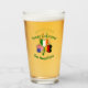 Personalized beer or drinking glass featuring the flags of Germany, Ireland and United States of America (USA) are all found in separate leaves of this shamrock, designed to celebrate St. Patrick's Day, 4th of July and Oktoberfest. Above are the words THREE CULTURES, below, ONE YOURNAME. Words on this shot glass are in dark green, Celtic style, circular letters. Add your name for a personalized look. For a gift just add someone else's name. Fun housewarming gift for the home bar. Great for family reunions, Octoberfest, St. Patrick's Day, and 4th of July.