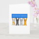 Four cartoon cats standing in a row, holding up a rectangular blue sign that says 'Happy Name Day' in German.