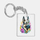 Pretty ai art watercolor style German Shepherd surrounded by yellow and pink flowers.