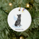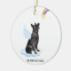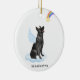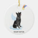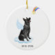 Celebrate your best friend with a custom German Shepherd angel memorial ornament. This German Shepherd christmas memorial ornament features a watercolor German Shepherd dog with angel wings and a rainbow and shooting gold star. Personalize with name front, dates back . This German Shepherd memorial ornament is a perfect dog remembrance keepsake or pet christmas memorial keepsake. COPYRIGHT © 2022 Judy Burrows, Black Dog Art - All Rights Reserved. German Shepherd Angel Personalized Dog Memorial Ceramic Ornament