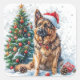 Celebrate the holidays with this detailed sticker featuring a German Shepherd wearing a Santa hat, sitting beside a snow-covered Christmas tree adorned with colourful ornaments. Scattered snowflakes, pinecones, and glowing fairy lights enhance the festive winter atmosphere. This clean, isolated design is perfect for adding seasonal charm to any holiday decor!
