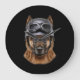 German Shepherd Dog, Biker In Motorcycle Helmet Large Clock