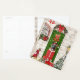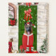 German Shepherd Dog Christmas sitting outside decorated home with Christmas wreath, Christmas tree is a perfect Christmas gift idea for dog lovers.