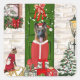 German Shepherd Dog Christmas sitting outside decorated home with Christmas wreath, Christmas tree is a perfect Christmas gift idea for dog lovers.