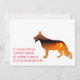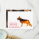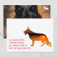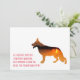 Minimal, clear, made to be personalized with your own images. Front: Text statement and a cutout filled up with your own image. Back side, space for some handwritten Message and 3 images. German Shepherd dog illustration on both sides. Highlight colour red