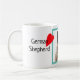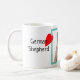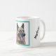 This mug features a photo of a handsome German Shepherd dog. On one side is a red heart with the words: German Shepherd, and you can personalize the other side with your name. It is for any person who loves German Shepherd dogs (also known as Alsations).
