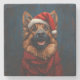 German Shepherd in a Santa Hat Stone Coaster