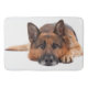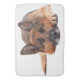 German shepherd lying down on a white background bath mat