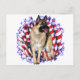 Flaunt your red, white and blue spirit with this German Shepherd and his patriotic background. Looks good for 4th of July, Memorial Day, Labour Day or ANY day on assorted apparel, buttons or hats.