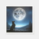 A German Shepherd dog looks up at a full moon where Santa's sleigh and reindeer are silhouetted against a bright full moon