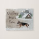 German Shepherd Watercolor Happy Holiday Scene Jigsaw Puzzle