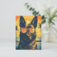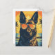 German-shepherd with sunglasses at a beach postcard