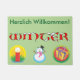 I'll be placing this mat at the door of my classroom to welcome my German students during the winter season. This colourful mat features the standard German welcome "Herzlich Willkommen" at the top and the seasonal "Winter" (yes, if you don't know, it's the same word in both languages) in the centre along with some appropriate imagery: a candle, a snowman, and a gift. There's plenty of red and green, but the mat remains suitable for any school. I have set the background colour as pale green, but a previous incarnation looked great in white, and you should be able to customize the colour of the mat. Order one for your German class, too.