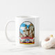 This is a product description for a design about Ansbach in vintage style, which shows a vintage image of Ansbach with flowers and the blue and white flag of Bavaria, as well as the "Germany" and the German flag at the bottom. The product is a cup. Enjoy your morning coffee or tea in this beautiful cup with a unique vintage design from Ansbach. The picture shows the beauty of this historic city, with a touch of nature and tradition. The flowers and the Bavarian flag give the design a natural and rustic atmosphere, while the "Germany" and the German flag create a sense of pride and belonging to German culture and history. With this cup you can enjoy your morning coffee or tea in style and comfort while expressing your love for the city of Ansbach.