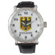 The Men's Vintage Leather Watch is a big-faced timepiece with the German Coat of Arms that will never go out of style. Featuring a three-hand quartz movement and genuine leather strap, this watch’s classic look is great for both formal and fun occasions. Customize the face with your name and designs to make a watch perfectly matched to your personality and style. INFORMATION: Men's wrist watch,, Face: Alloy, Strap: Leather DIMENSIONS: Face: 1.45" diameter, Strap: 9.25" x 0.86", 1.75" diameter, Weight: 0.115lb OTHER INFORMATION: 3-hand analogue Japan Quart, Full colour custom printing on face, Buckle closure, Water Resistance: Up to 3 ATM (98.4 ft), 1 year manufacturers limited warranty. Battery included. The watch can easily be personalized for men, women, and children: styles, sizes, images and fonts. #germanywristwatch #germangenealogy #DeutschlandArmbanduhr #germangenealogy #azoreandesigns