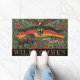 Germany Willkommen / Welcome Doormat featuring modern art with patriotic German Flag, Eagle, wolf and boar in Art Nouveau following William Morris style. Original traditional, fun house mat for any occasion. Easily customize "welcome" text.