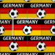The flag of Germany, tricolour, displaying the national colours of Germany: black, red, and gold. In the middle there picture of a black and white, soccer ball / football. The text, in white reads Germany.