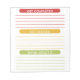 Everyday take time to organize yourself with this organization notepad. Right out your tasks that need to get completed, get started and tasks you need to think about. Creative task list notepad has three colourful text boxes where you can customize your own text to fit your own organization life style. Great for students, music practice, honey to list, projects, scheduling and just for jotting down ideas and notes.