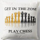 Showcase your hearty chess player side with this throw pillow featuring a reflective chess set along with the following sound chess advice: "Get In The Zone Play Chess". Memorable chess saying throw pillow for any chess club or avid chess player!