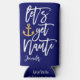 Ahoy bridesmaids! Keep your canned drinks cold with this funny "Let’s Get Nauti" seltzer can cooler featuring a modern typography design adorned with a gold effect anchor, on a blue background which can be customized with the bride's name, wedding date as well as the recipient’s name. Makes a great bridal shower/bachelorette party keepsake! For questions or requests regarding this design, please contact us via the chat; we'd be happy to help!