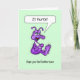 This cartoon style card is for someone who has an arm or elbow injury. Or, it could be for someone who has had an operation. It portrays a caricature of a cute hairy purple bug with its left arm in a sling or bandage. The bug is sitting down with outstretched legs. It has a sad look on its face and is crying in pain, even its long nose and two antennae are drooping in sadness. There is a speech bubble from the bug saying that it hurts.The image is my own from a freehand sketch, scanned and digitally coloured in Sketchbook Pro. The background is pale green and the text is black.