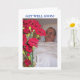 Photography, of a guy in a hospital bed and a vase flowers, on the front, an inside Get Well greeting, and Get Well Soon balloons on the back, comprise this card suitable for a man.