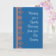 A pretty Get Well Card for someone who is having Eye Surgery, with a border pattern of Orange, Pink and Blue Flowers and a Rangoli motif, from a hand-painted paper collage by Judy Adamson. Part of the Posh & Painterly 'Rangoli' collection.