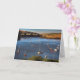 A beautiful notelet / card showing a view of the River Avon at Bantham, on the south west coast of England. Dusk is settling in for the night and the moored sail boats and launches bask in the last rays of the dying day - a typically English river scene during late summer.